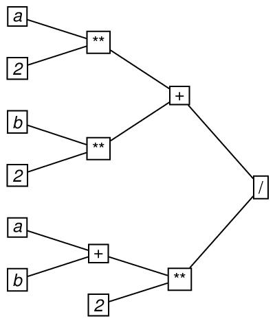 To illustrate the use of the eTree and eLeaf elements, here is an encoding of the second example in section 20.2 Trees, repeated here for convenience.